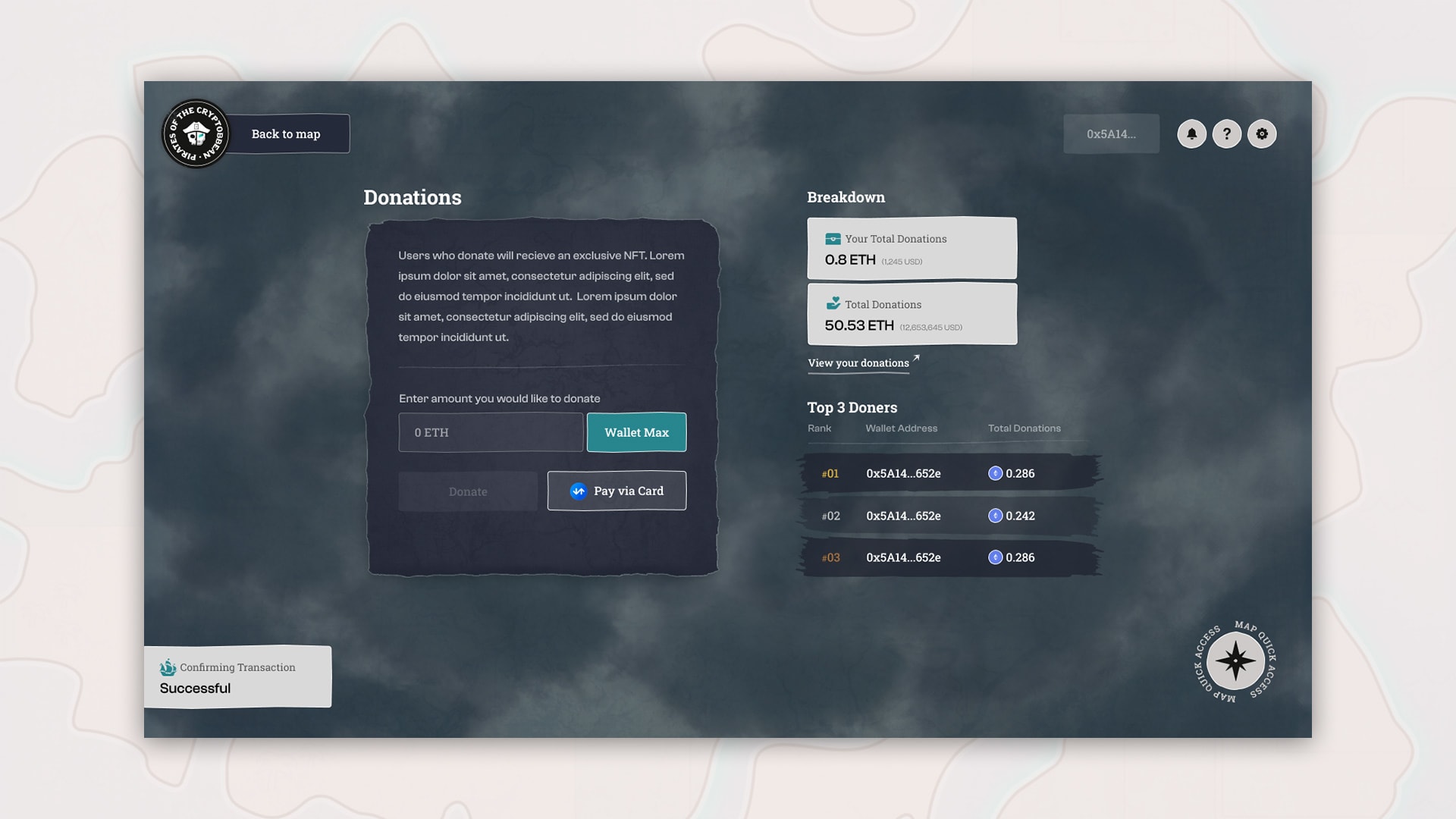 Avark was tasked to design and build a gamified experience with an adventure-like feel for Bucanneers of the Blockchain’s community to engage with.