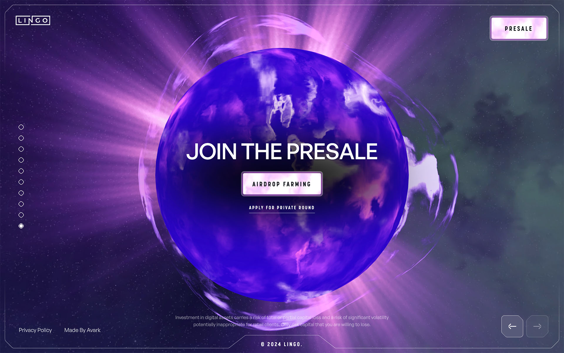 Lingo partnered with the Avark team to disrupt the web3 space, motivating us to design a compelling website that solidifies this vision. We created a website that reflects the revolutionary nature of the project and creates a lasting impression, whilst educating users on the real world benefits and value of their ecosystem.