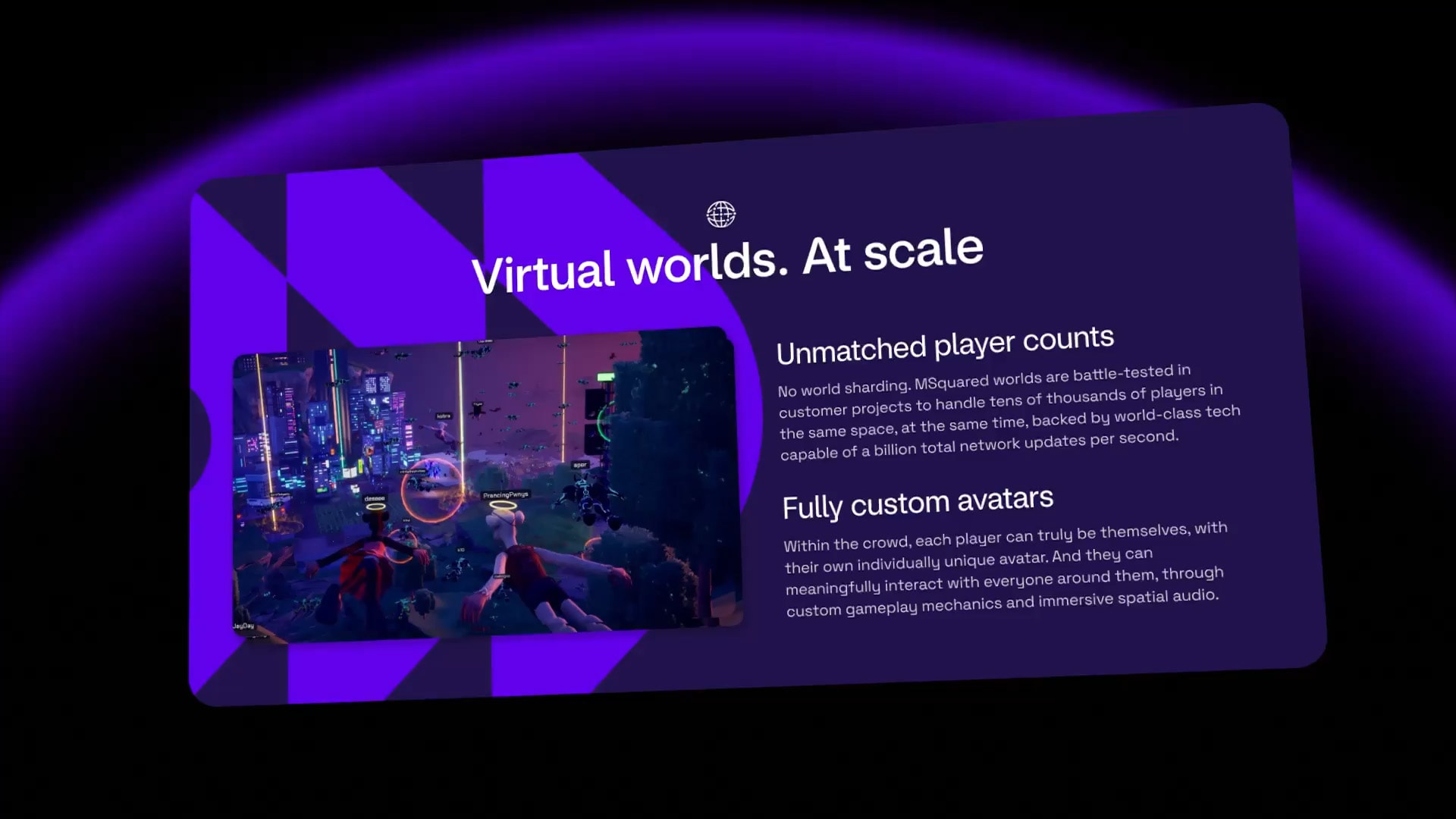 MSquared needed to truly engage potential customers with their website. To bring the metaverse concept to life, we crafted an engaging digital experience for MSquared. Upon landing on the page, users are required to scroll through a portal to access the rest of the site, thus playing into the notion of entering new worlds, the key message behind their product.