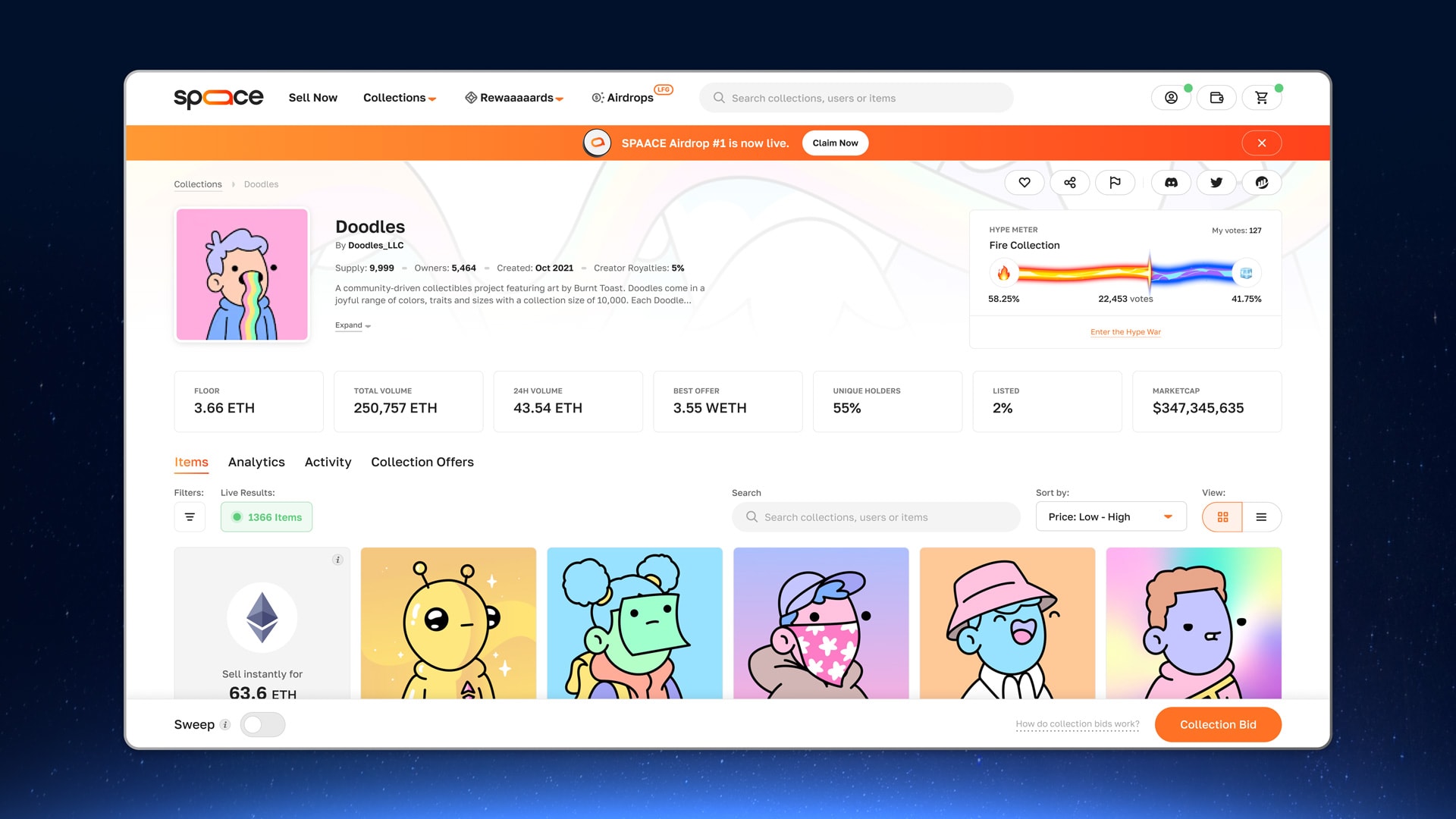 Spaace are looking to revolutionise the field by pioneering 100% revenue sharing, integrating gamified elements into the NFT trading experience. With 65% of $SPAACE allocated to the community, all fees will be redistributed to $SPAACE token holders, adding an exciting layer of layer of sustainable value.