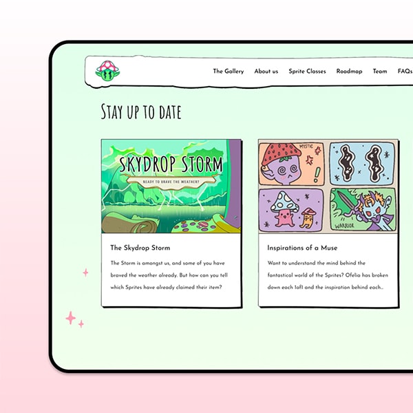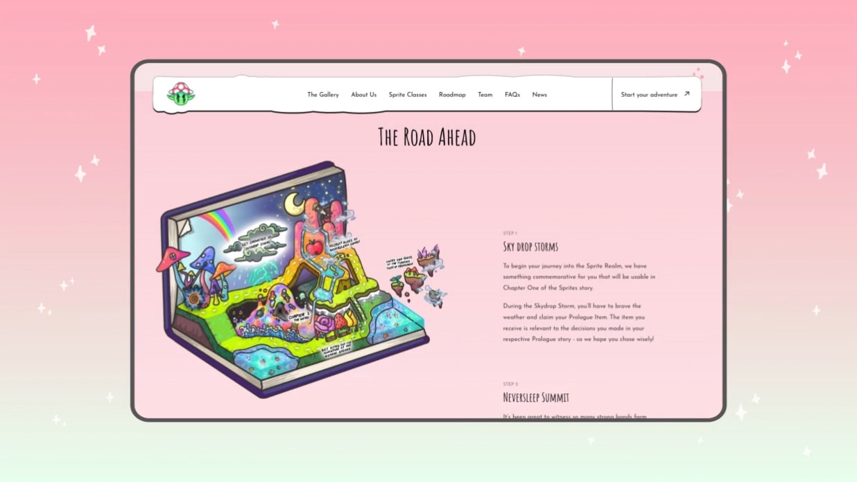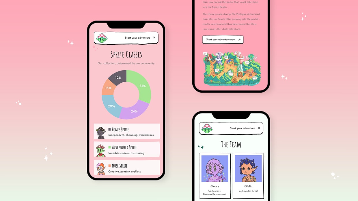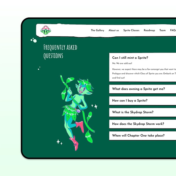 Avark worked from design to build to develop the new Sprite Club website. We placed a high emphasis on interactivity, whilst also ensuring the site was visually eye-catching to capture the innovative, magical nature of the Sprite Club NFT collection.