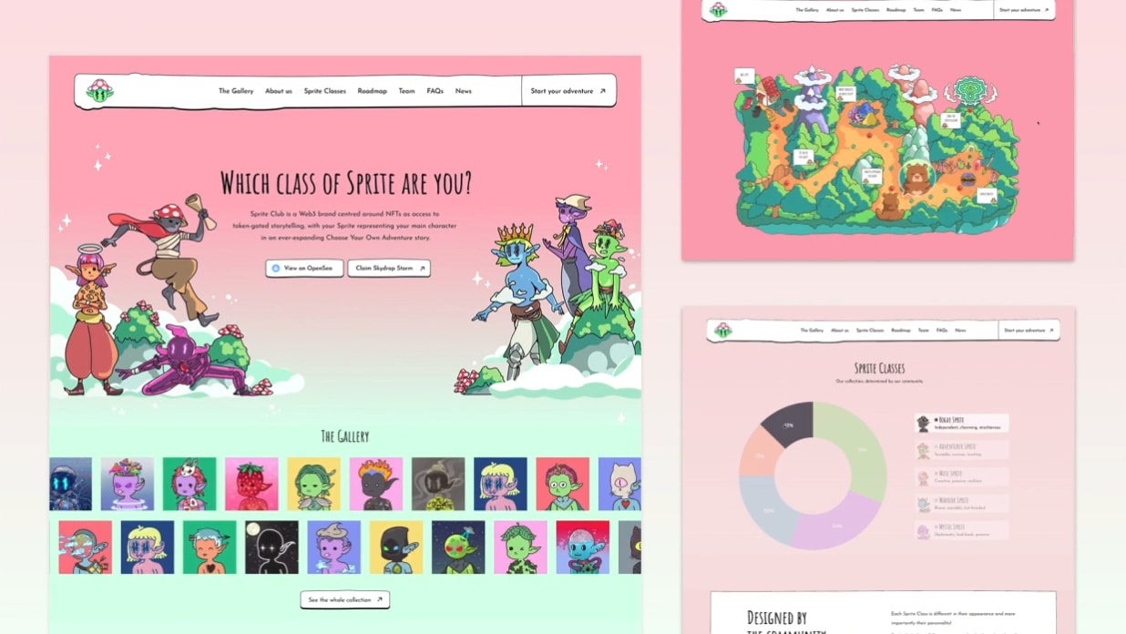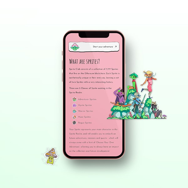 Sprite Club approached us with the challenge of refreshing their website to reflect that their NFT collection had moved from the minting stage to being a fully live NFT project featuring 7,777 sold-out NFTs. The new website needed to showcase Sprite Club’s unique Choose Your Own Adventure style NFTs whilst still being informative to those new to discovering the collection.
