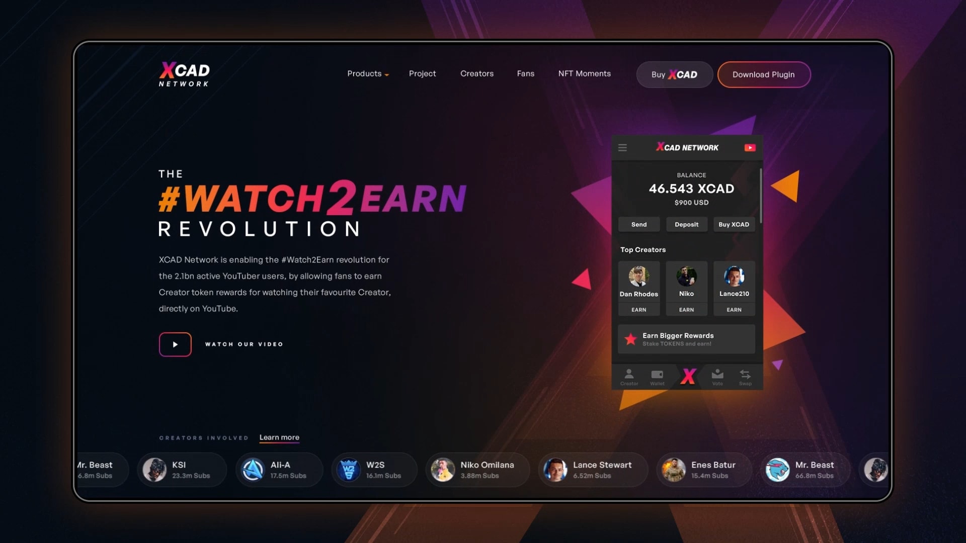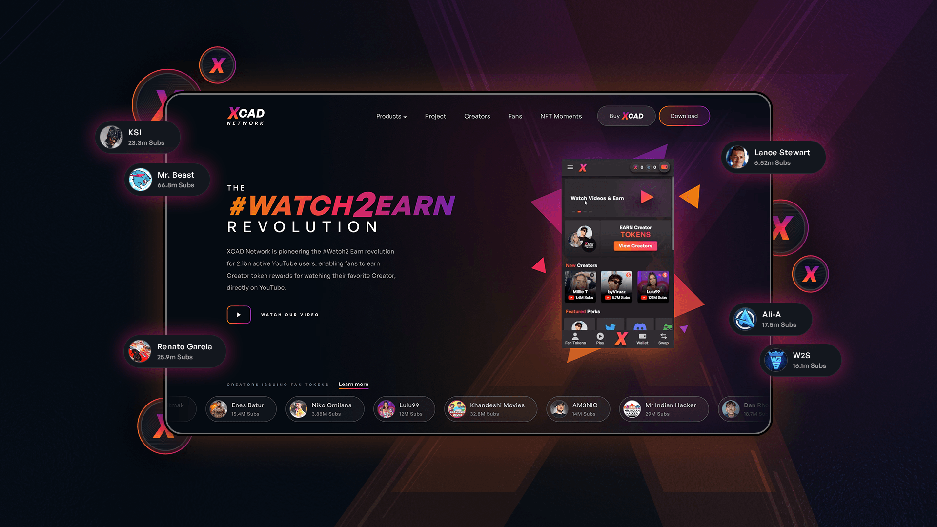 XCAD has led the Watch-to-Earn revolution. Their ecosystem, consisting of five products, has attracted over 100 content creators with more than half a billion cumulative YouTube subscribers.