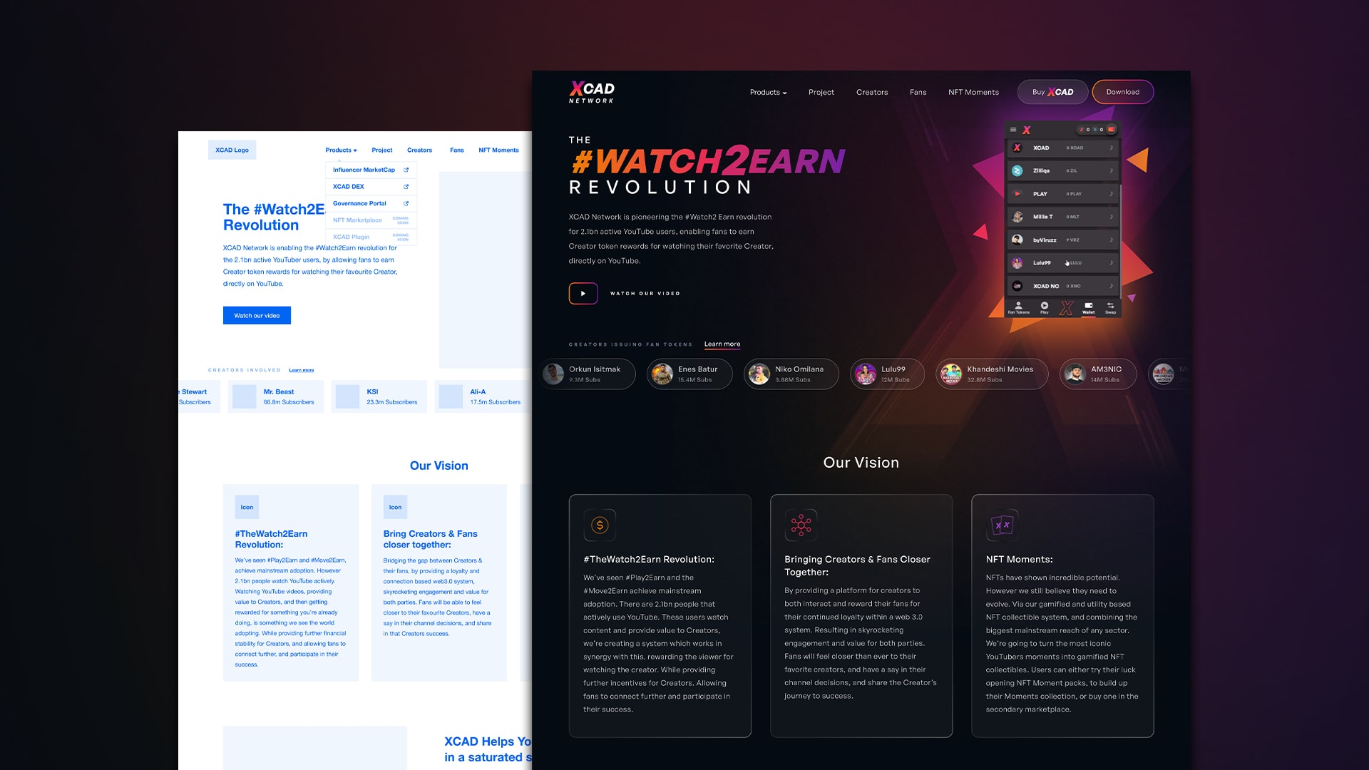 XCAD Network approached us with the challenge of designing a website for their Watch-to-Earn project. The site would act as a shopfront for their products and needed to onboard users by educating them about XCAD’s Watch-to-Earn ecosystem.